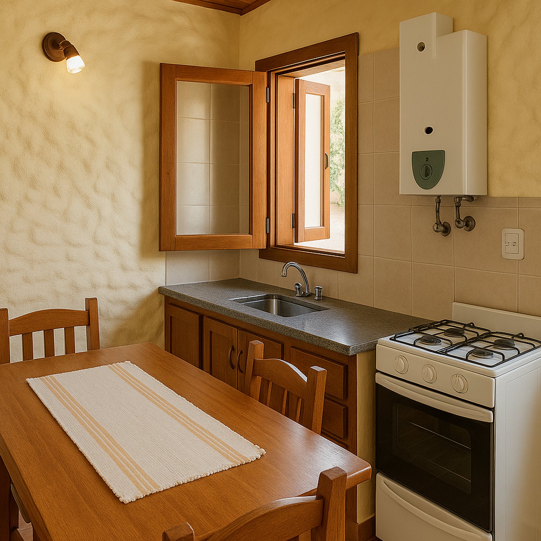 Las cabañas no incluyen servicio de desayuno ni limpieza diaria. Se entregan con ropa de cama y toallas limpias al inicio de la estadía. No se admiten mascotas. El ingreso al predio es seguro y cuenta con portón. Recomendamos venir con vehículo propio por la escasa frecuencia del transporte público.
